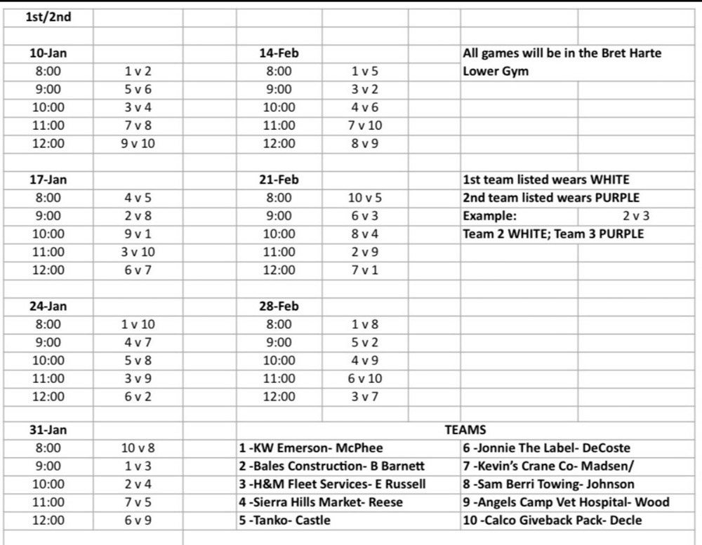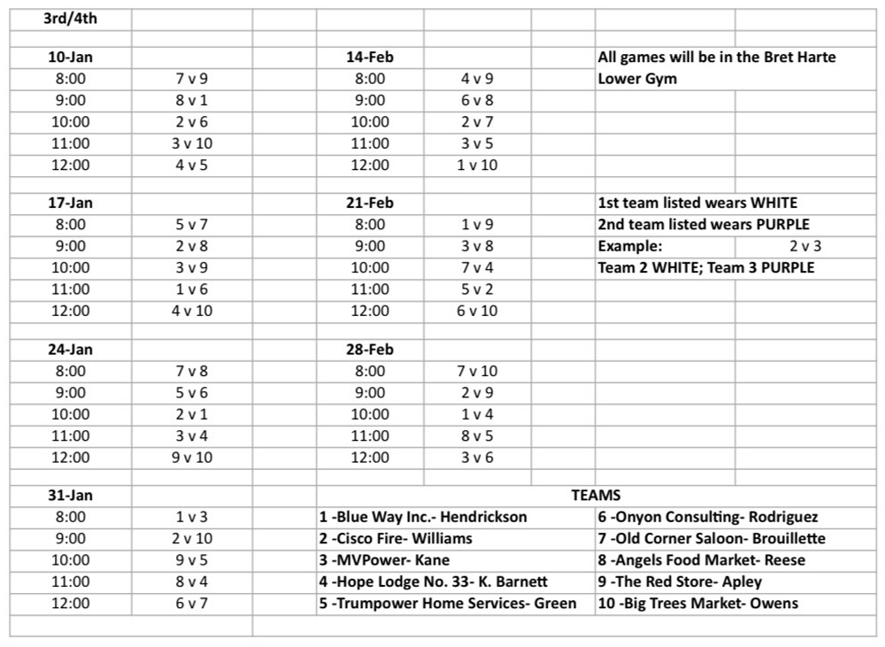 dates are Saturdays starting January 10, 17, 24, 31